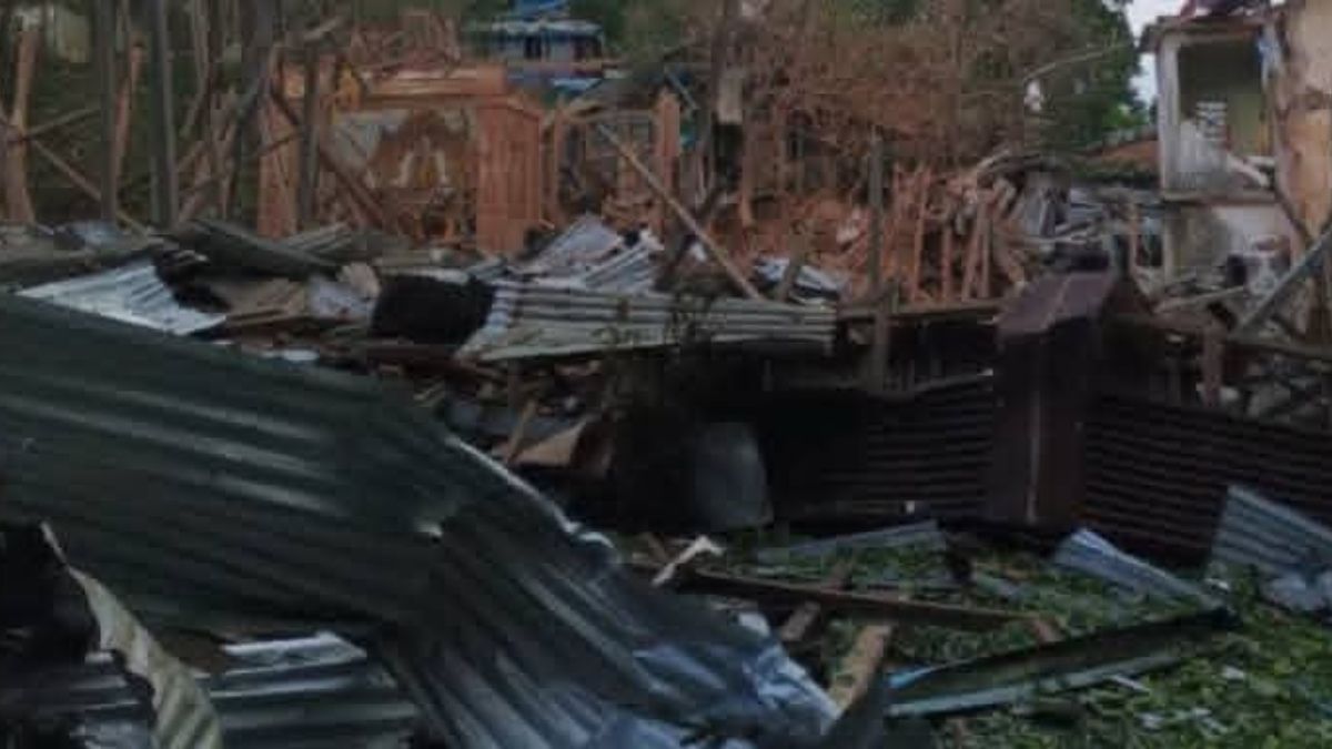 মিয়ানমারের অভ্যন্তরে বিমান হামলায় ক্ষতিগ্রস্ত ঘর। ছবি- সংগৃহীত