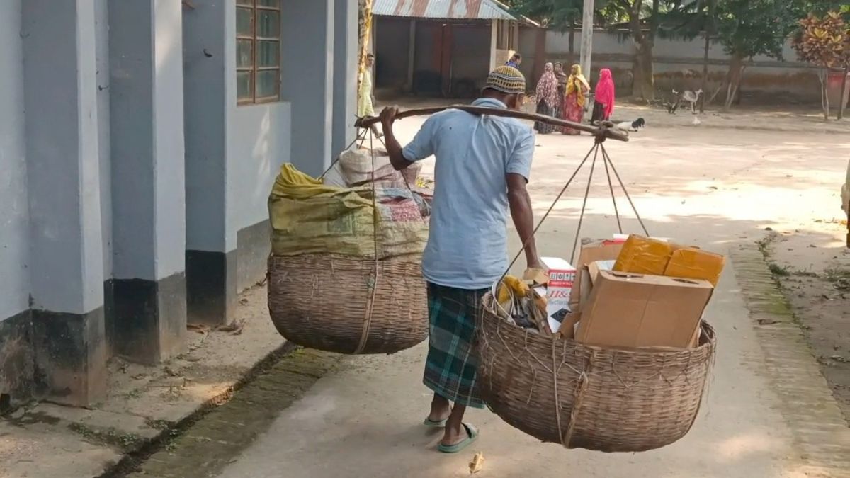 আব্দুল মাবুদ গ্রামে গ্রামে ফেরি করে চলেছেন। ছবি- রূপালী বাংলাদেশ