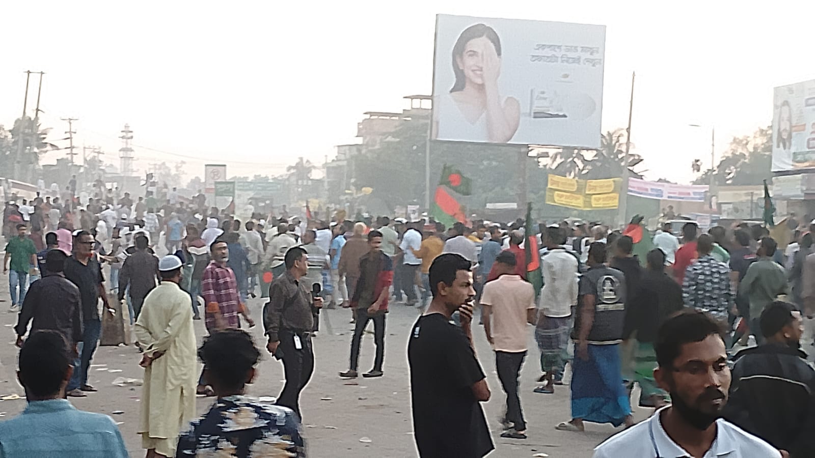 স্থানীয় পথচারী আনোয়ার হোসেন জানান, বাসস্ট্যান্ডের কাছাকাছি পৌঁছালে মোহাম্মদ আলীর সমর্থিত মিছিলে ককটেল নিক্ষেপ করা হয়। এতে পরিস্থিতি ব্যাপক উত্তপ্ত হয়ে ওঠে। মোহাম্মদ আলীর সমর্থকরা প্রতিপক্ষকে ধাওয়া দিলে কয়েক দফা ধাওয়া-পাল্টাধাওয়া হয়। এক পর্যায়ে পুরো বাসস্ট্যান্ড এলাকা মোহাম্মদ আলী গ্রুপের নিয়ন্ত্রণে চলে যায়। তারা স্লোগান দিতে থাকে, ‘বয়কট, বয়কট—স্বপন ফকির বয়কট।’ প্রায় দেড় ঘণ্টা এ ধাওয়া, পাল্টা-ধাওয়া ও বাসস্ট্যান্ডে অবস্থান চলে।