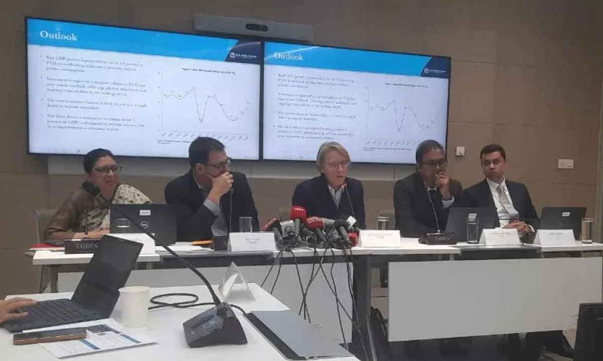 মঙ্গলবার (৭ অক্টোবর) রাজধানীর আগারগাঁওয়ে বিশ্বব্যাংকের নিজস্ব কার্যালয়ে এক সংবাদ সম্মেলনে প্রতিবেদনটি প্রকাশ করা হয়। এতে বক্তব্য দেন বিশ্বব্যাংকের ডিভিশনাল ডিরেক্টর জেন পেসমি। এশিয়ার ডেভেলপমেন্ট আপডেট প্রতিবেদন তুলে ধরেন বিশ্বব্যাংক ঢাকা অফিসের চিফ ইকোনমিস্ট ফ্রানজিসকা লেসলোট ওহসেজ। বাংলাদেশ ডেভেলপমেন্ট আপডেট প্রতিবেদন উপস্থাপন করেন সংস্থার ইকোনমিস্ট নাজমুস সাকিব খান। পাশাপাশি বক্তব্য দেন সিনিয়র এক্সটারনাল অফিসার মেহেরিন এ মাহবুব।