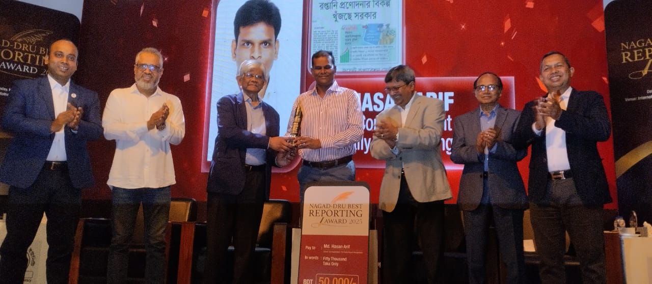 ‘রপ্তানি প্রণোদনার বিকল্প খুঁজছে সরকার’ শিরোনামে দৈনিক রূপালী বাংলাদেশে প্রকাশিত সংবাদের জন্য এই পুরস্কারে ভূষিত হয়েছেন হাসান আরিফ।