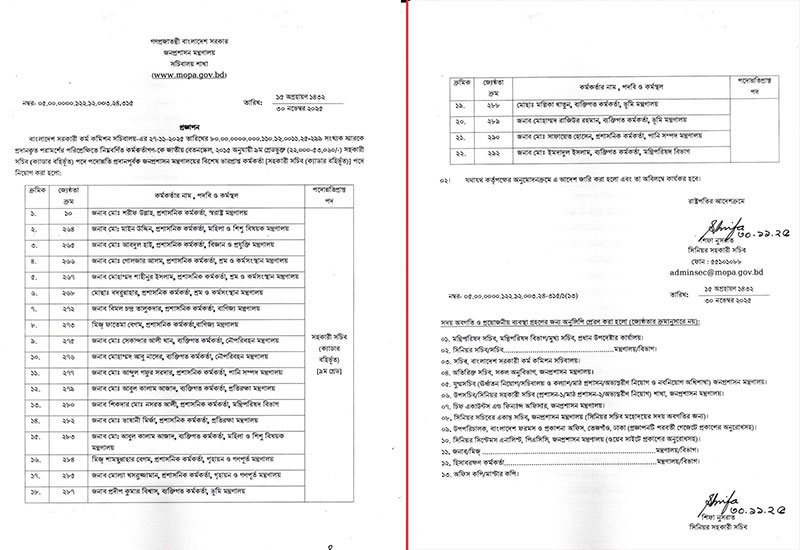 রোববার (৩০ নভেম্বর) এ-সংক্রান্ত একটি প্রজ্ঞাপন জারি করেছে জনপ্রশাসন মন্ত্রণালয়।