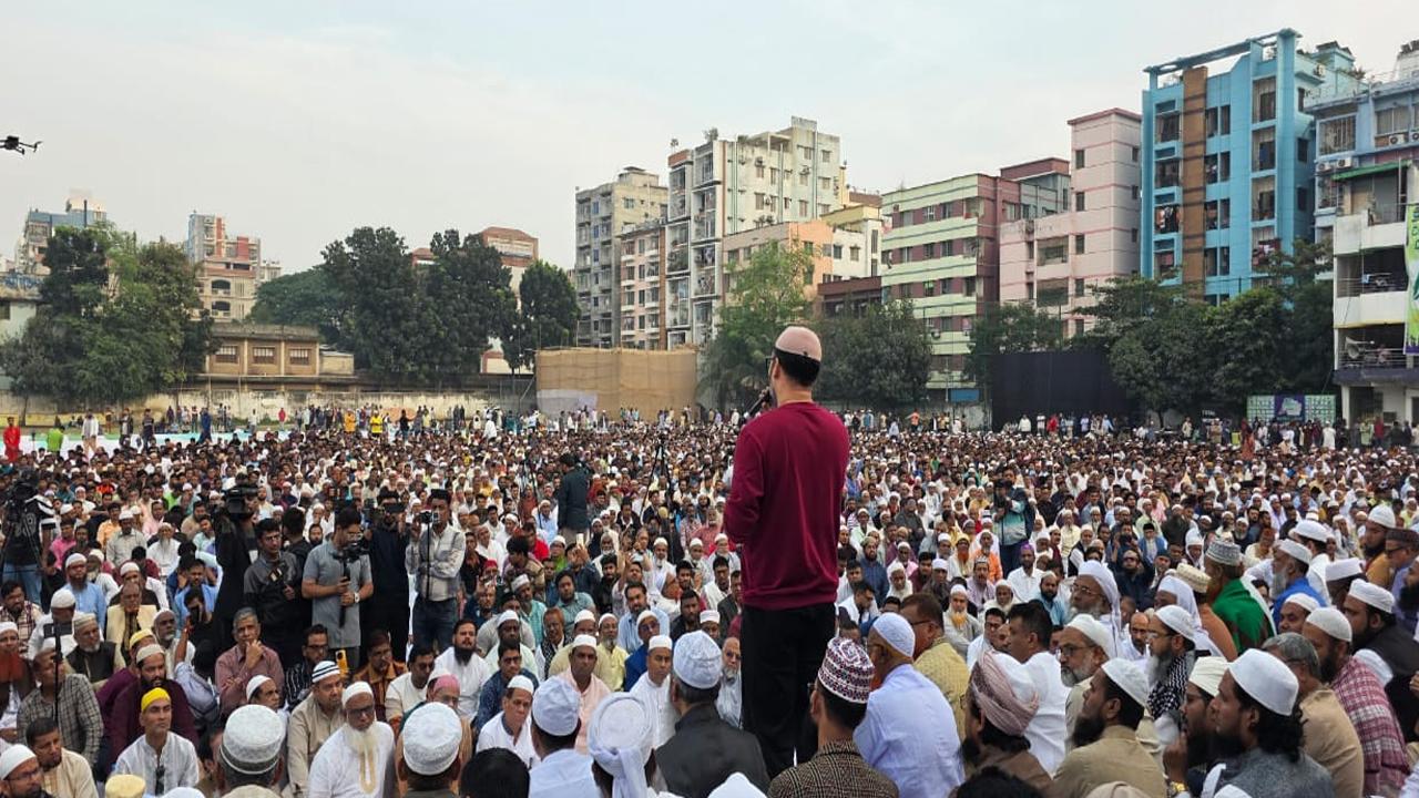খালেদা জিয়ার রোগমুক্তি কামনায় দোয়া অনুষ্ঠানে বক্তব্য দেন আমিনুল হক।  ছবি- রূপালী বাংলাদেশ
