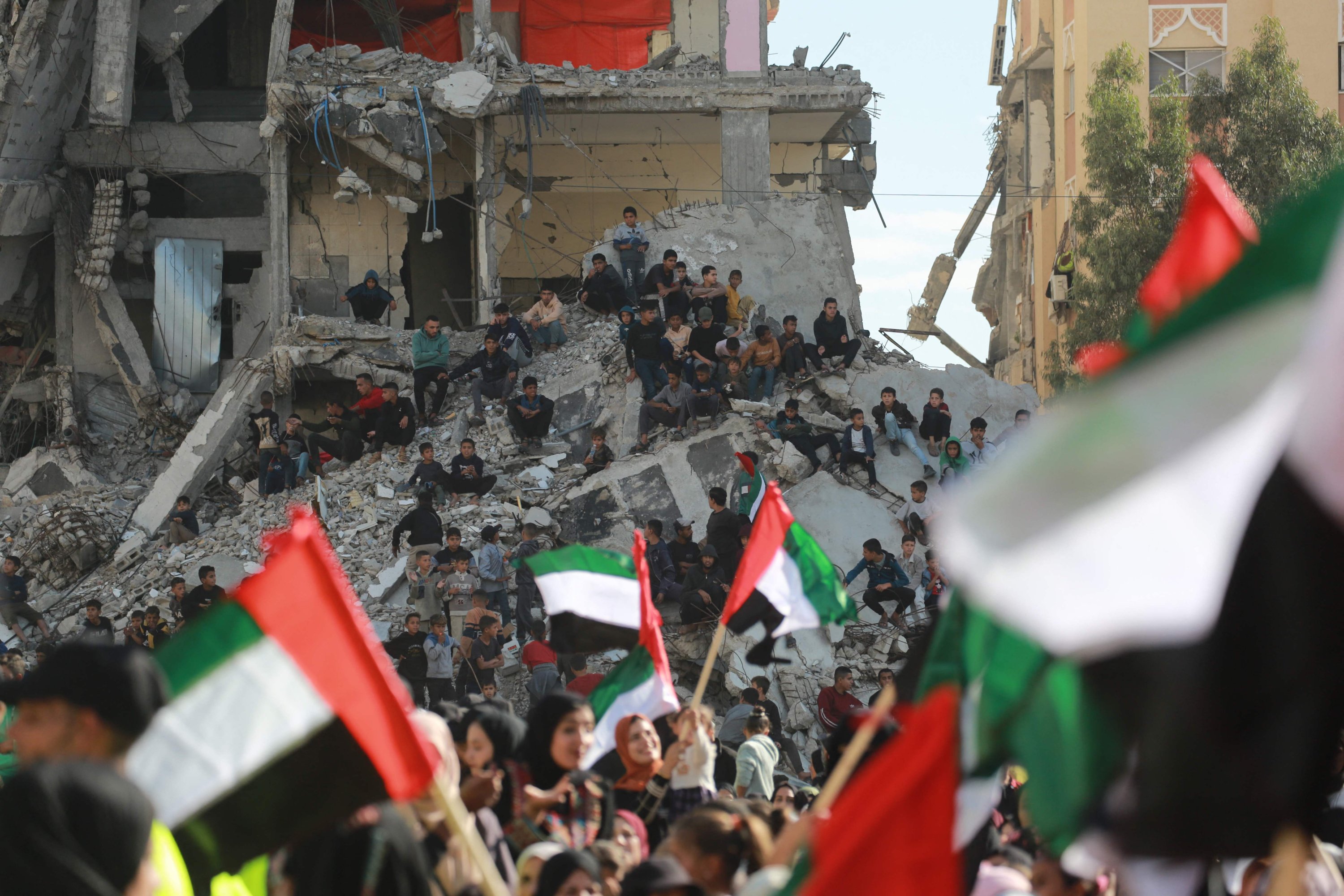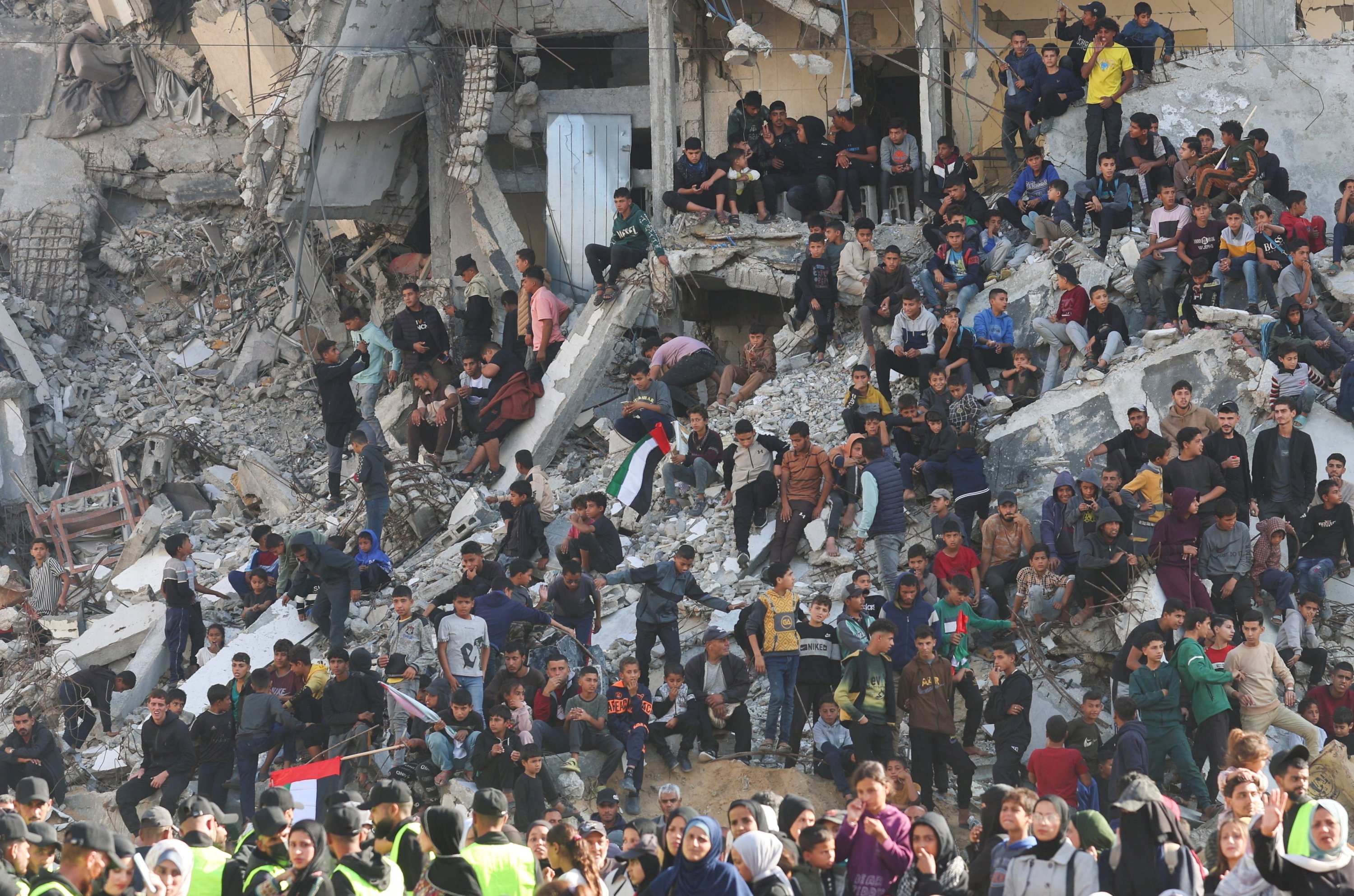 যুদ্ধবিধ্বস্ত দক্ষিণ গাজার ভাঙ্গাচোরা রাস্তায় প্রিয়জনের হাত ধরে গণবিয়ের অনুষ্ঠানে যোগ দিয়েছেন ৫৪ ফিলিস্তিনি দম্পতি। দুই বছর ধরে ইসরায়েলের গণহত্যা ও ধ্বংসযজ্ঞের পর, মঙ্গলবারের (২ ডিসেম্বর) এ অনুষ্ঠান ফিলিস্তিনিদের মনে দুর্লভ আনন্দের এক সুযোগ এনে দিল।