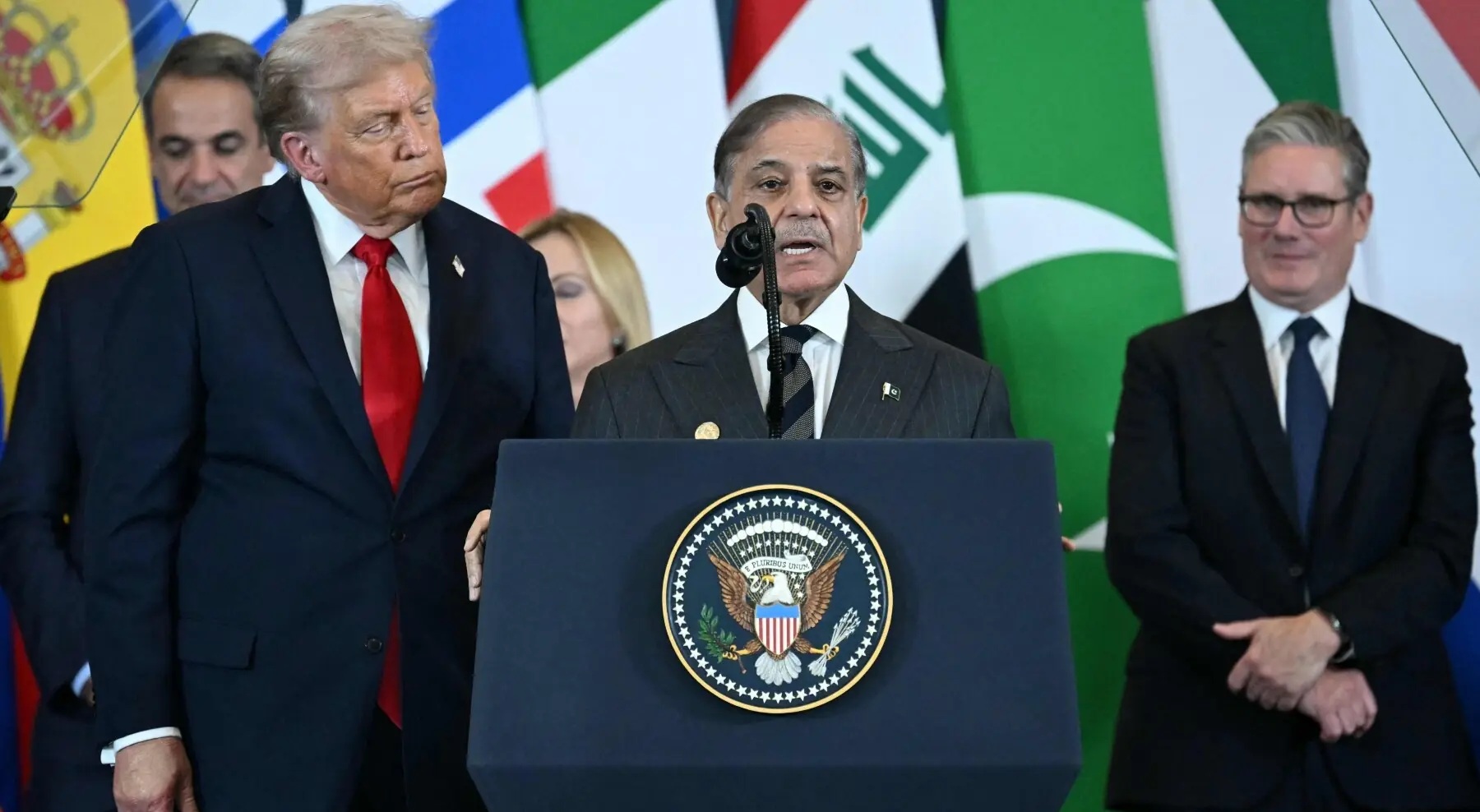 শাহবাজ শরিফ যখন এমন প্রশংসা করছিলেন, তখন ডোনাল্ড ট্রাম্পকে বেশ আত্মতৃপ্ত মনে হচ্ছিল। পেছনে অন্য দেশের নেতারা স্থির দাঁড়িয়ে ছিলেন। কারও কারও হতবাক চেহারায় অবিশ্বাস প্রকাশ পাচ্ছিল। করতালির সময়ও তারা দ্বিধান্বিত ছিলেন।